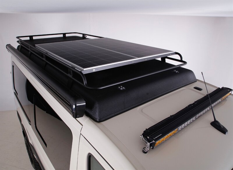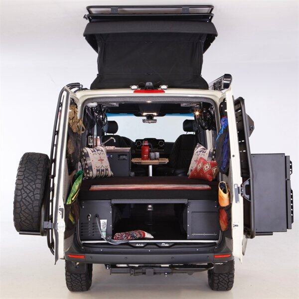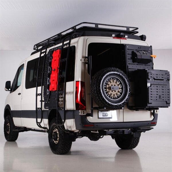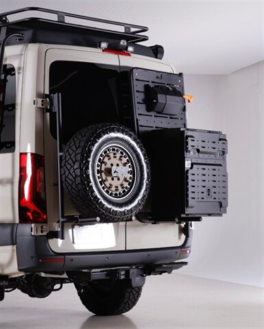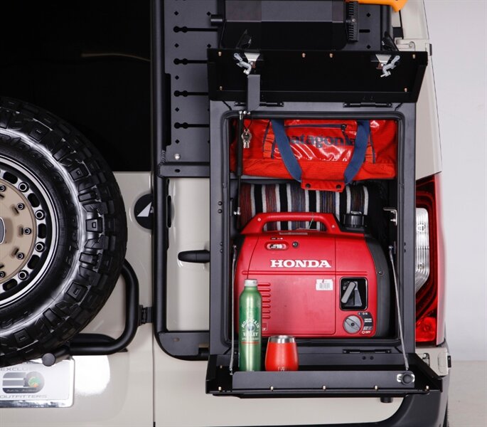 • Aluminess roof rack, rear tire carrier & exterior utility box