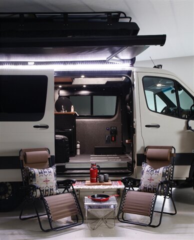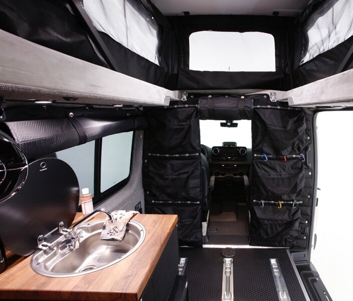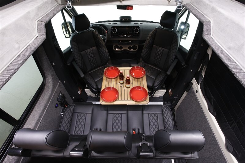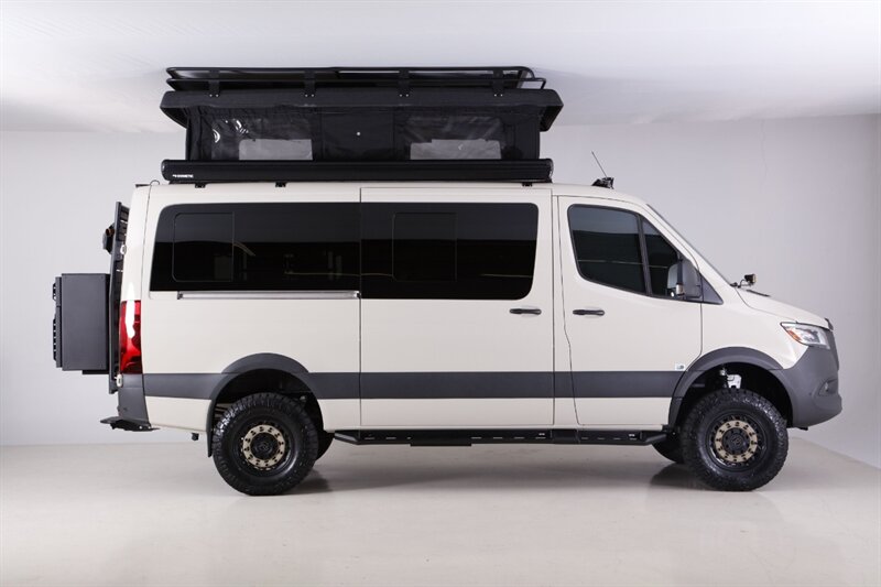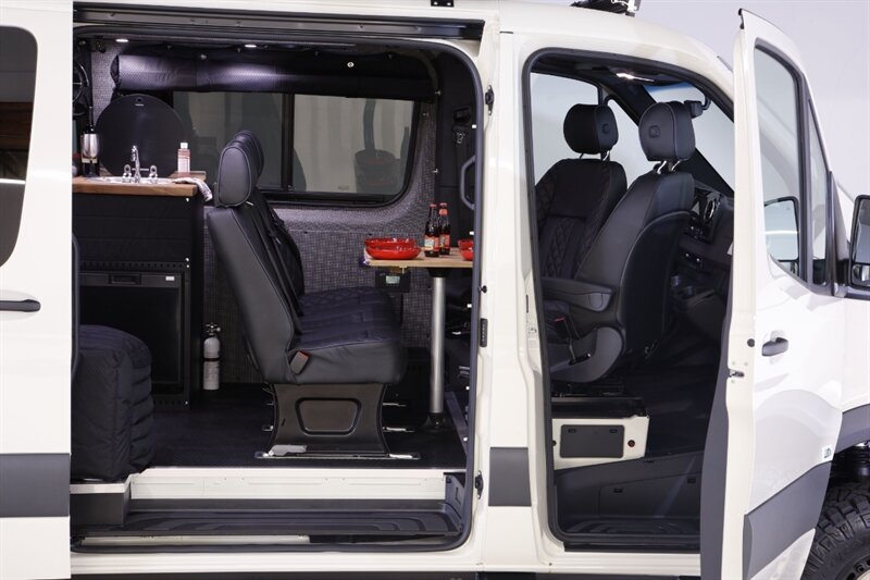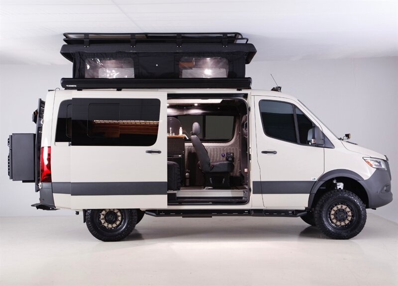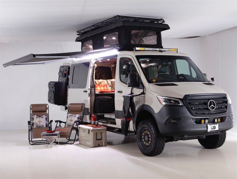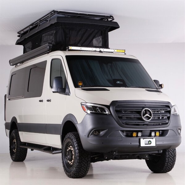 Introducing our Brand New AWD Sprinter! Standard height 144” WB, Poptop in Pebble Grey, finished with custom full-leather upholstery. This van is built for comfort, capability, and adventure.