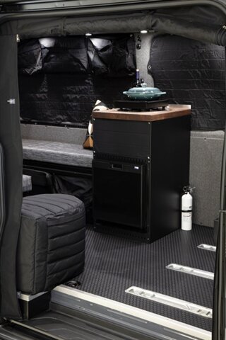 • Galley w/ Portable Induction Cooktop + Refrigerator